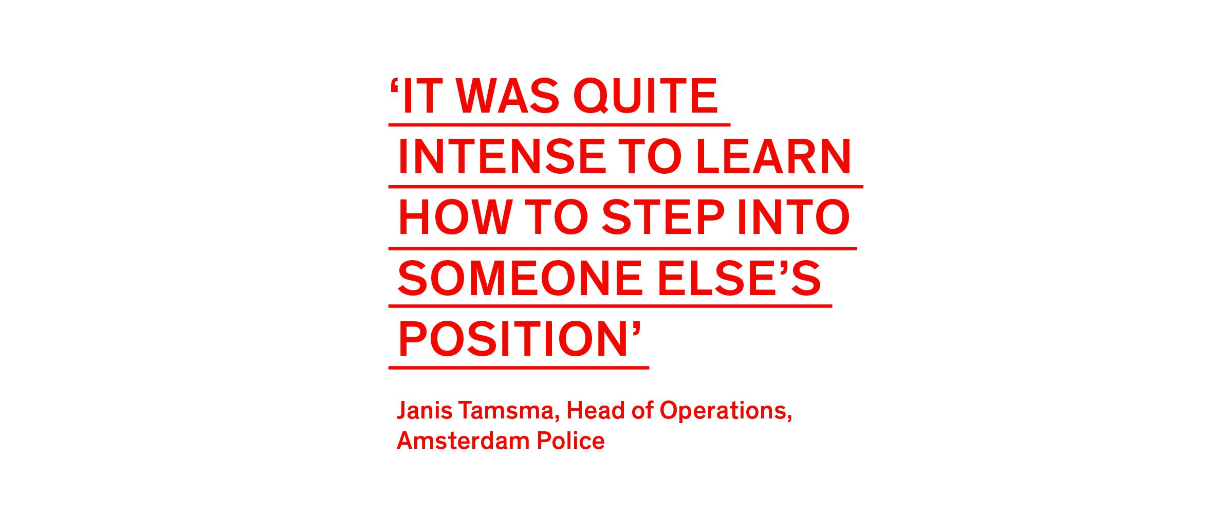 Rather than a traditional promotional campaign, the visual strategy made the underlying process visible to the wider public, signalling a police organisation willing to listen and contributing to a broader conversation about trust, behaviour and the relationship between the police and the city.